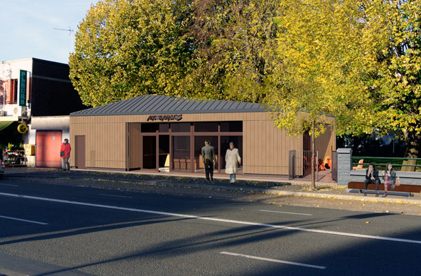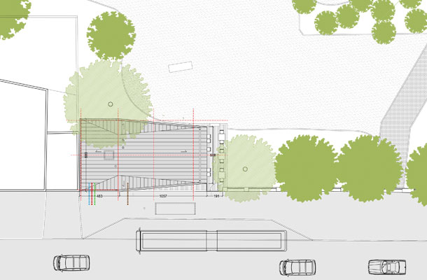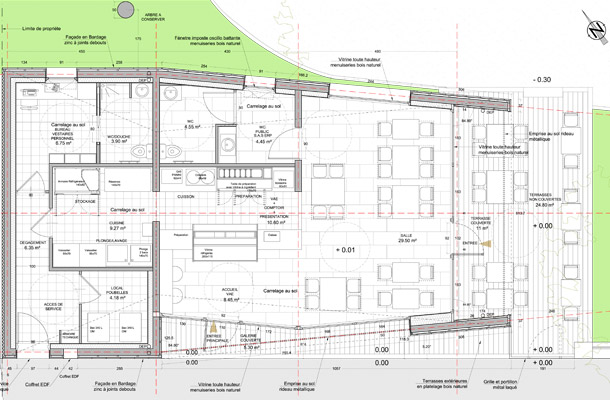 L’OPAC de Drancy a imaginé l’implantation d’un petit pavillon devant accueillir un restaurant , cette construction en lisière de parc, dans le prolongement d’une série de commerces de proximité, se situe également en vis à vis de la mairie de Drancy. Le projet est conçu sous la forme d’un monolithe composé d’une partie pleine en bardage Zinc (façades et toiture) et d’une partie entièrement vitrée prolongée par une terrasse ouverte sur le parc.